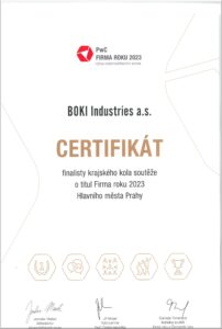 BOKI Industries a.s. finalistou ve skupině „Exportéři 2024“.
