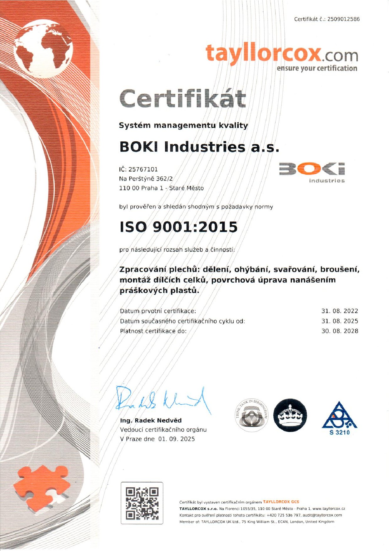 Systém managementu kvality naší společnosti je certifikován dle ISO 9001:2015.