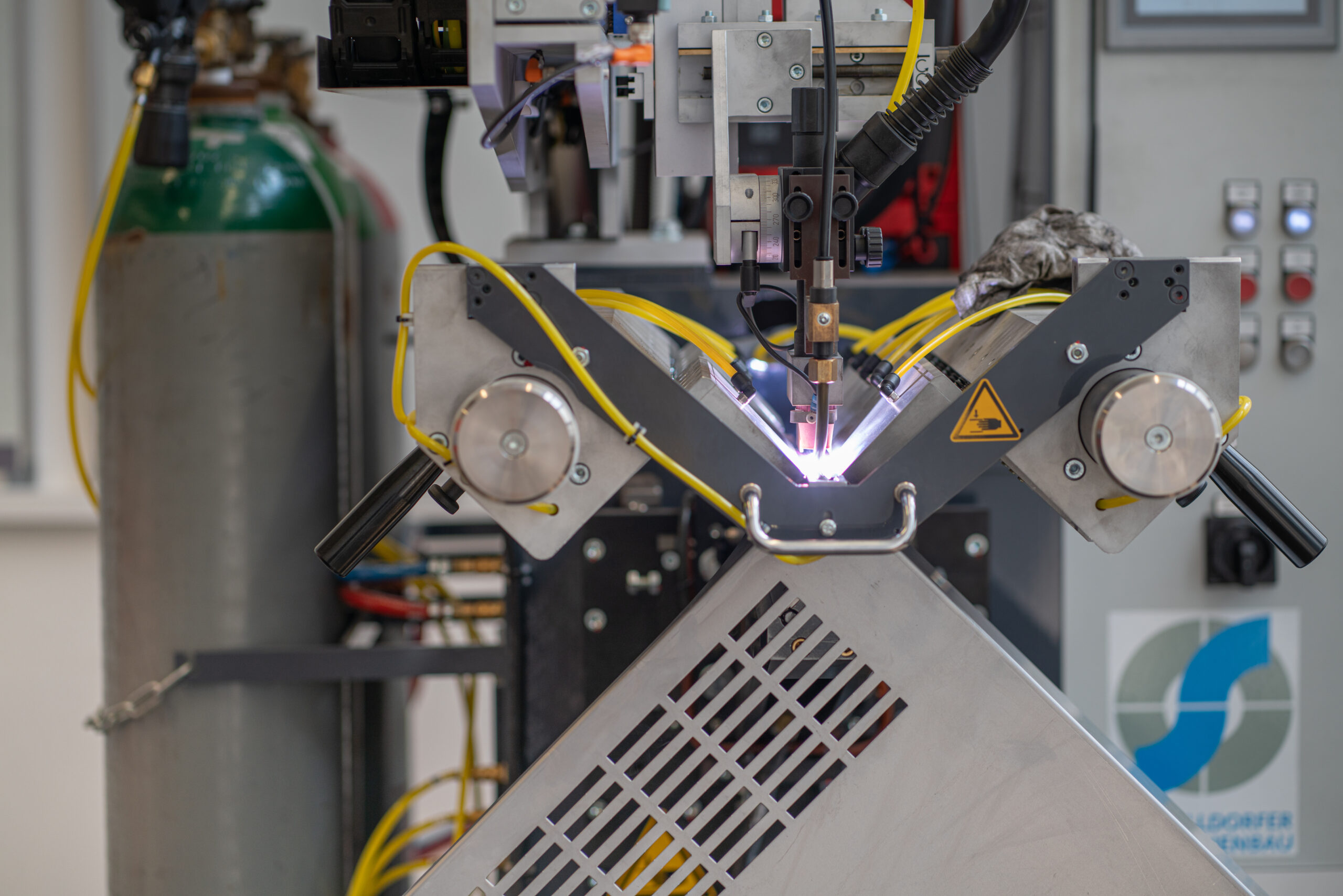 Das Schweißen von Stahl führen wir im MAG-Verfahren in Schutzatmosphäre aus Ar/CO2-Mischgas und das Schweißen von Edelstahl im TIG-Verfahren in Argon-Schutzatmosphäre aus. Aluminium und seine Legierungen schweißen wir mit den Verfahren TIG und MIG in Argon-Schutzatmosphäre.