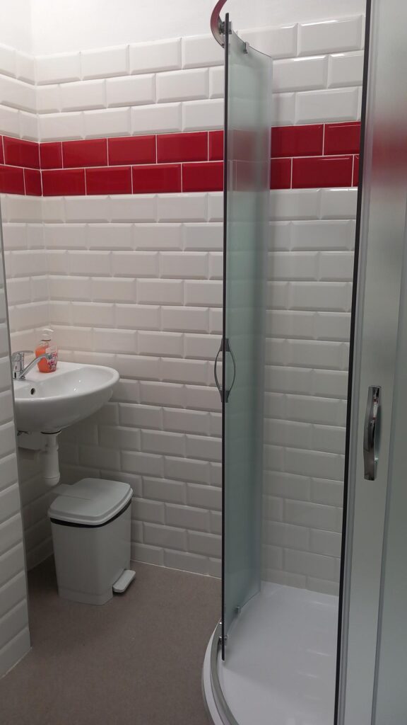 V rámci stavebních prací došlo k výměně okna, vodovodního a odpadního potrubí, stávající elektroinstalace, obkladů, dveří a sanitárního vybavení. Dále byly instalovány sádrokartonové podhledy a položena nová podlaha.