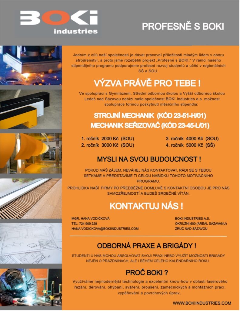 Jedním z cílů naší společnosti je dávat pracovní příležitosti mladým lidem v oboru strojírenství, a proto jsme rozeběhli projekt „Profesně s BOKI“